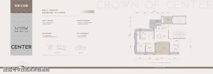 10号栋(139户型,3米层高,四房三卫双套间设计,112%得房率)