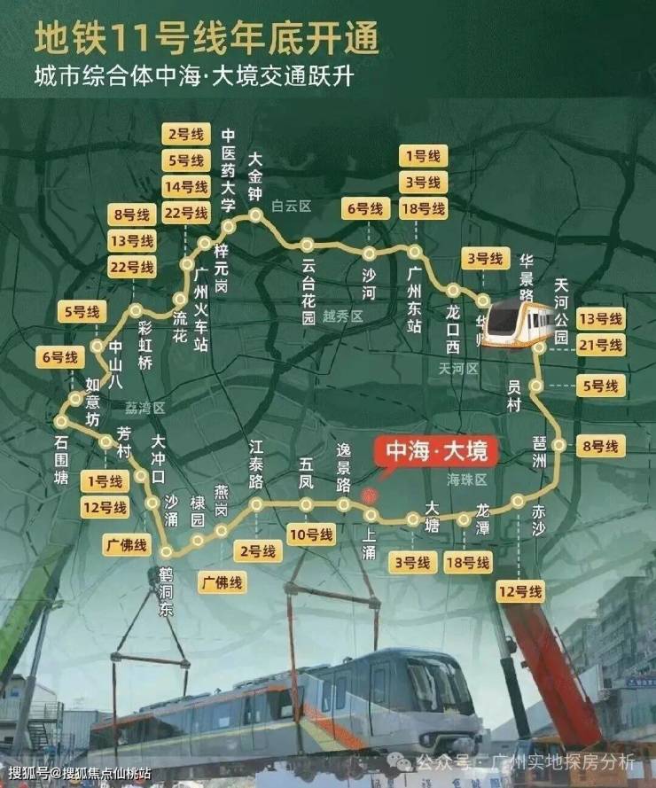 项目就在地铁11号线上涌站上盖,周边还有逸景路站,坐拥换乘之王的大流量,4站内有四条换乘地铁,4站可到琶洲珠江新城。