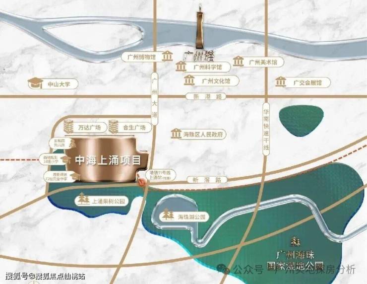 项目位于海珠上涌果树公园北侧,广州大道南与新滘西路交汇处,海珠湖就在楼盘的东侧。一个地处核心+坐拥稀缺生态资源+配套全能+增量前景的全能项目。