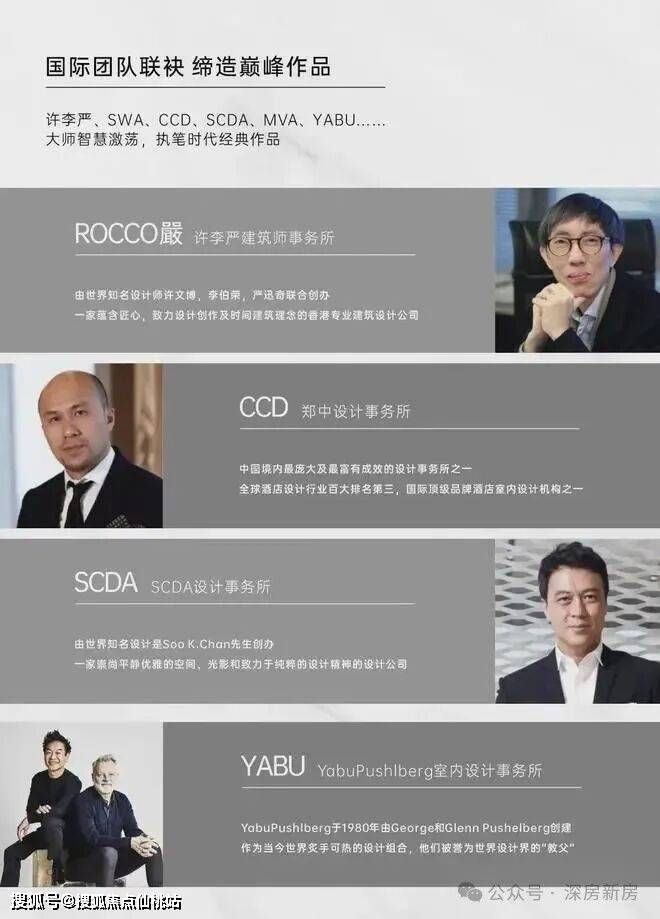 恒裕深圳湾品质方面由许李严、CCD、SCDA、YABU、ALT、SWA、MVA、迈进等国际顶级大师团队联合打造。