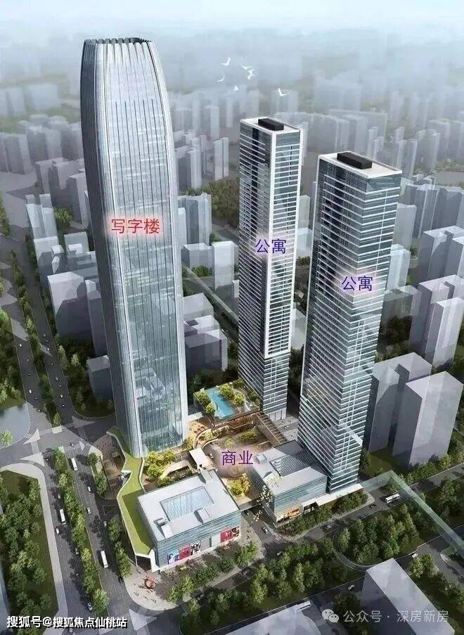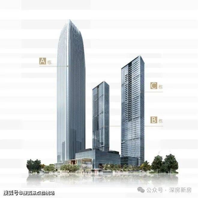 恒裕深圳湾由一栋写字楼(A栋310米),两栋公寓(BC栋,250米)以及裙楼商业组成。
