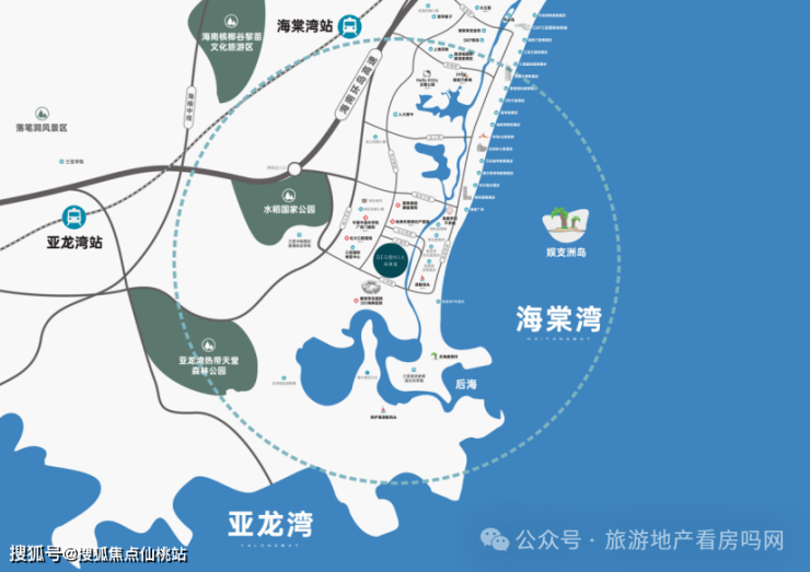 海棠墅国际度假康养中心项目择址林旺南路以东,301医院以北,位于海棠湾医疗康养核心区内,与G98高速、两条轨道交通以及数十条公交线路相互连接。距离亚龙湾高铁站约16公里,距离三亚市中心约28公里,距离凤凰机场约35公里。