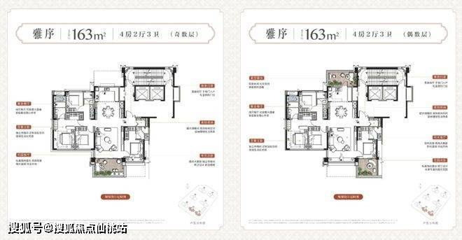 163㎡四房层高优越、利用率出色,四开间朝南全明通透,类独梯入户衔接前厅与储藏间,LDKBG一体化公区开阔,四房含多间套卧,双豪华套卧配置齐全。180㎡四房创新交错式露台打造空中庭院,独立电梯厅+子母门入户,公区适配多代共居需求,南向双套卧功能完善。218㎡四房层高更高、南向面宽阔绰,横厅连通茶室,中西双厨兼具接待与互动功能,南北双庭院与露台引景入室,主卧套房配置精良,预留多功能空间适配多元生活。