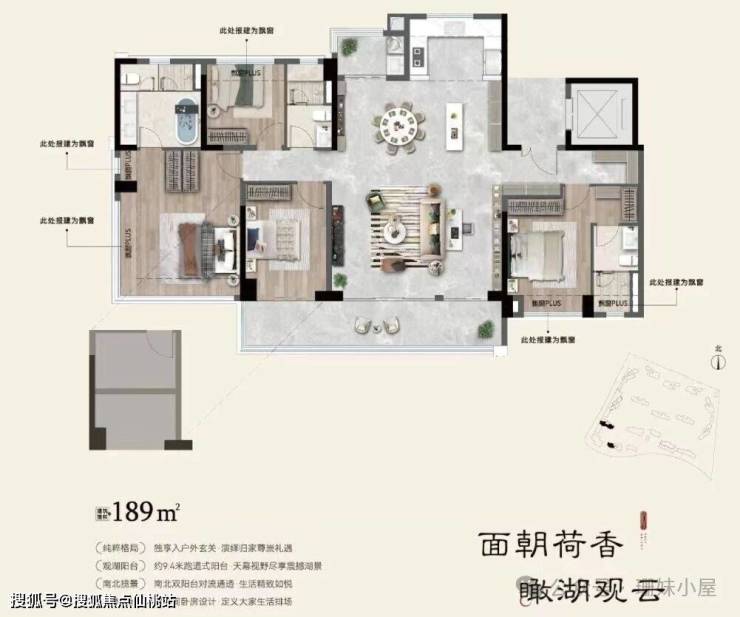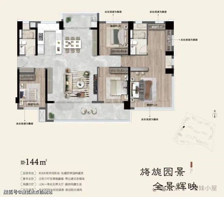 :纯住宅社区,容积率2.4,规划15栋高层,2026年底交付;户型设计强调高实用率(近100%),122㎡起跳的大平层满足改善需求,部分户型阳台率超20%,比旧规多5.8㎡实用空间。