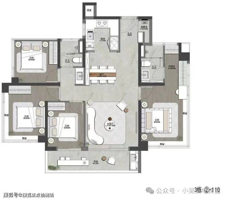 项目总共有5栋住宅,1栋2梯5户,其余4栋都是2梯4户,每栋32层,约672套货量,早期推出的1栋目前只剩下几套88平三房,84平已售罄,5栋还剩几套130平四房户型,目前项目货量比较多选择的就是2-3号楼了,户型有107-121平。