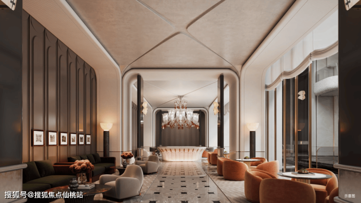 首先是比肩五星级豪华酒店大堂的一幅10米宽×12米高的巨幅剧院窗景,恢弘中饱含无尽的典雅。
