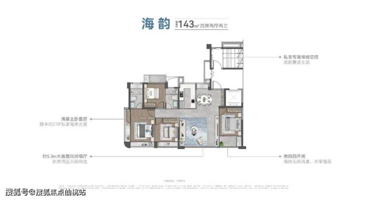建筑面积约143㎡的南向四开间、5.3m大面宽阔绰横厅,将舒适感拉满;