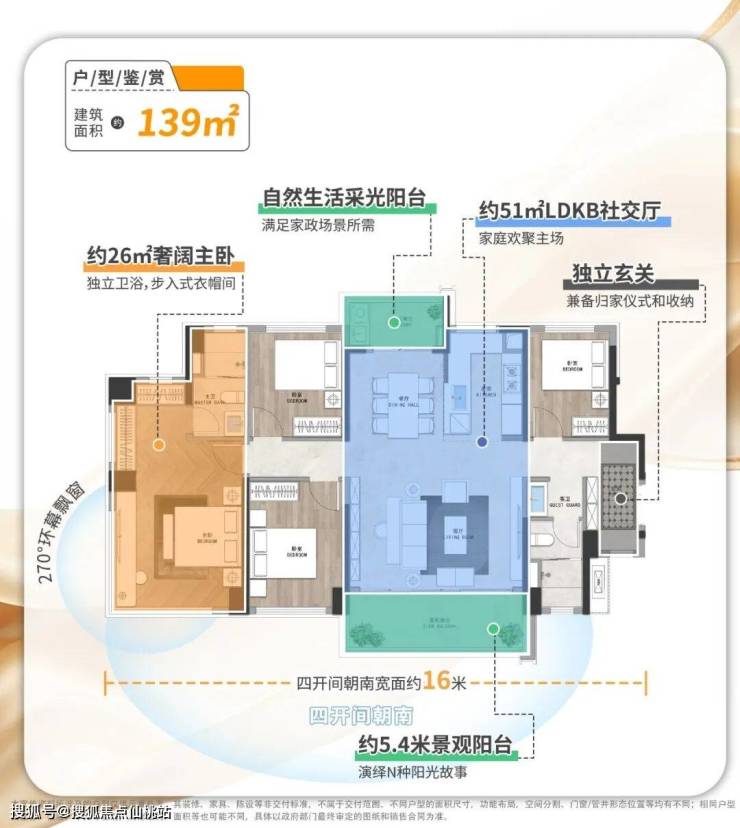户户南向,2T3户的高配,项目主推116-139㎡四房,约3米层高,新规使用率≥100%。