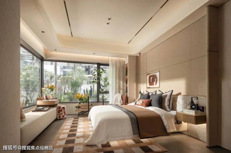 约22㎡的超大主卧,是夫妻二人回归自我的舒适空间,配置270°瞰景飘窗,与传统只有一扇窗的设计相比,简直是泡在阳光里。
