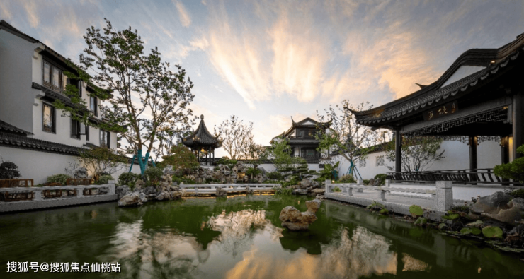 项目以拙政园、留园等苏式名园为圆点,打造具有五进归家礼序;结合中国传统园林“借景”等手法,布置园林,创造意境。
