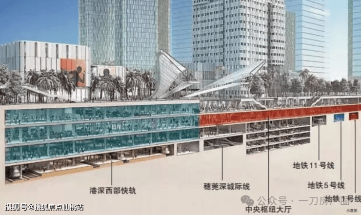 交通:距离 1/5/11号线三线交汇的前海湾站 约700余米。未来还将接入与2条城际线(穗莞深城际、规划港深西部铁路)通达湾区,以及未来的港深西部快轨。