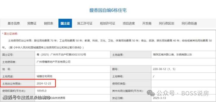 广州绿城馥香园于 2024 年 12 月 5 日以总价 24.16 亿元竞得海珠客运站地块,折合楼面价约 33,800 元 /㎡(未扣除配建)