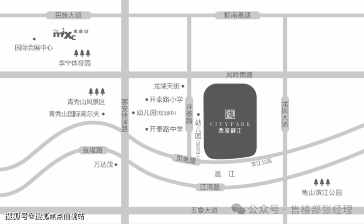 交通:民族大道、仙葫大道、凤岭南路,青环路、绕城高速、蓉茉-龙岗大道、龙岗大桥、青山大桥、良庆大桥、青坪大桥;