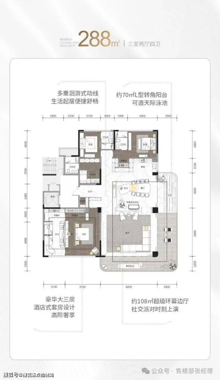 7、270°宽幕观阳台,最大100㎡客厅,墅级前庭后院享受。