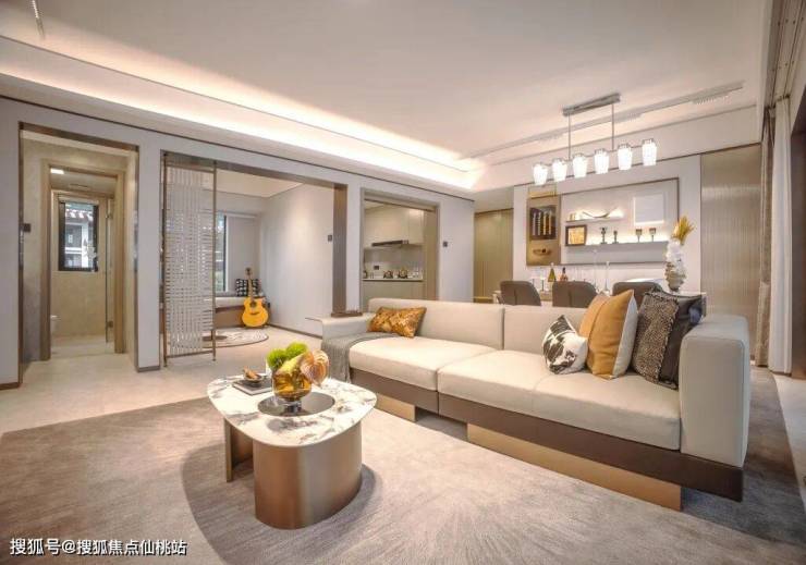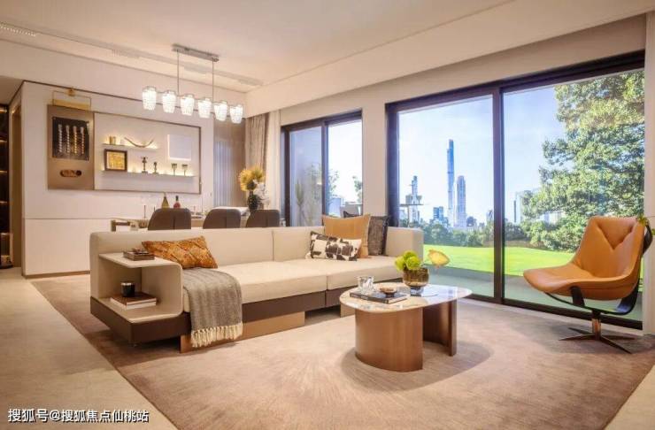 通过宽敞明亮的入户大堂,便进入到艺术感十足的现代时尚样板房。6.2米长的阳台180度景观采光面,拥揽四季风光,与暖光对话自然,诗意栖居。