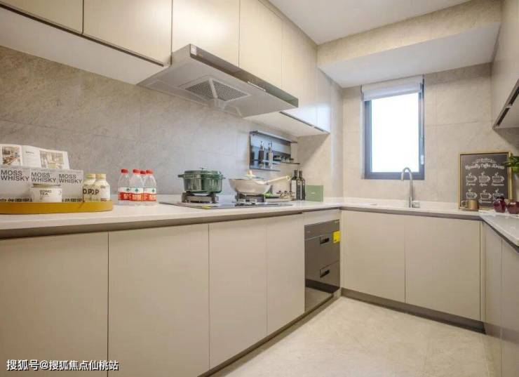 厨房采用U型厨房布局操作台面长,地柜吊柜储物空间充足,厨房电器设备规划合理,各处细节配置营造舒适与轻松自然的烹饪环境。