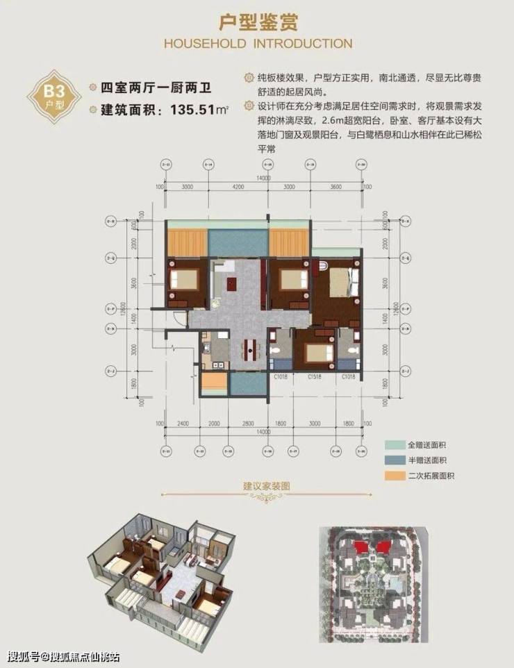 主次卧室、客厅特设观景阳台,让视野随着地面延伸,四季变迁尽收眼底。
