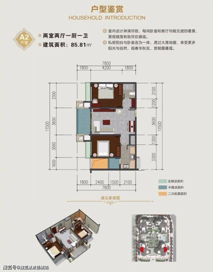 85.81㎡二房一卫(赠送8.44㎡)