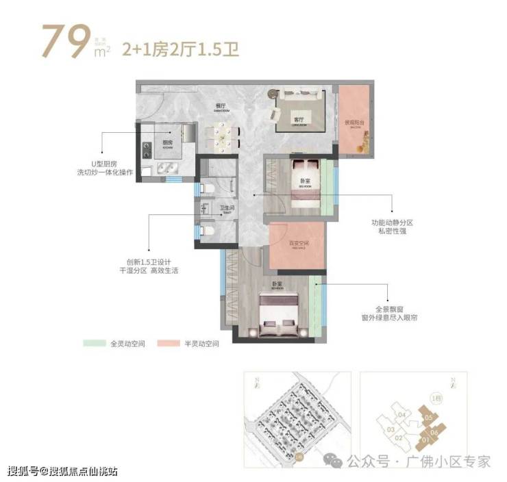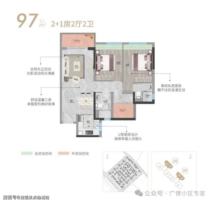 全明方正竖向双厅,U型厨房更多储藏空间,私享套卧浪漫生活