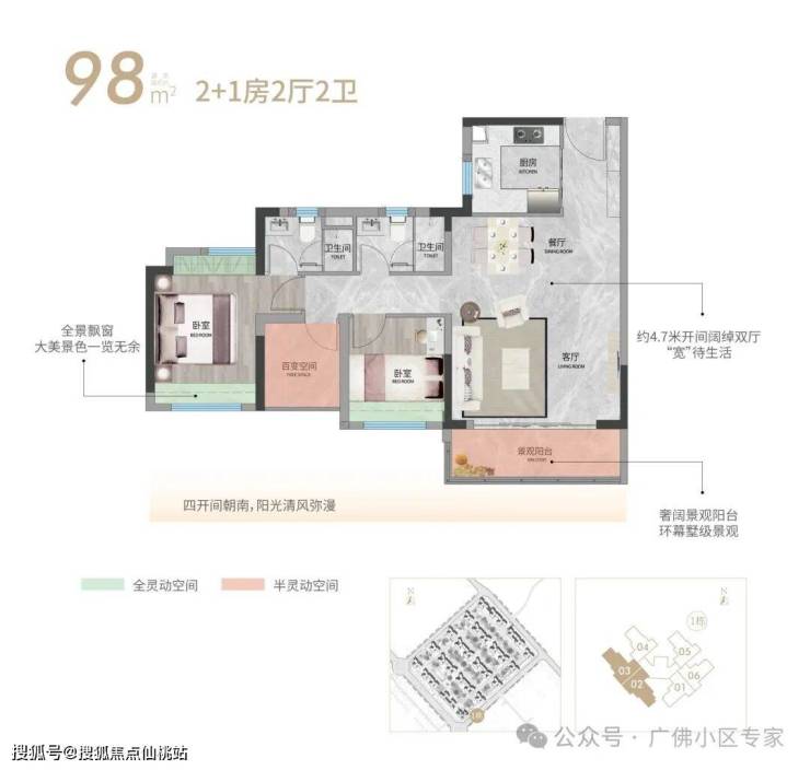 约4.7米开间阔绰双厅,环幕墅级园林景观,四开间朝南,阳光清风弥漫