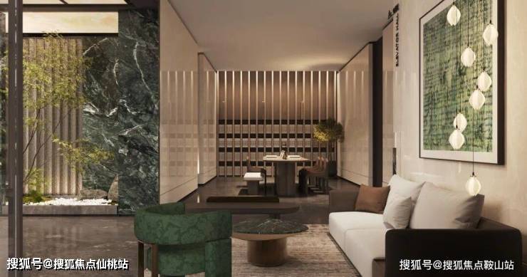 大堂墙体普拉达绿奢石 ,质地坚硬而耐用,搭配古铜色铝板,气质高贵而典雅。