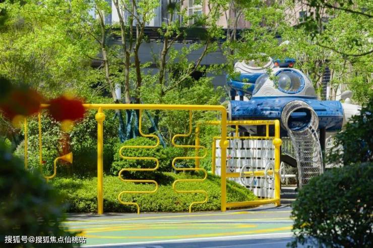 孩子们追着阳光跑向太空主题儿童乐园,蓝色飞船滑梯、趣味攀爬架藏着童年的“宇宙梦”,家长们坐在一旁休憩区,看着这一幕,才懂“全龄社区”不是口号,是触手可及的生活。