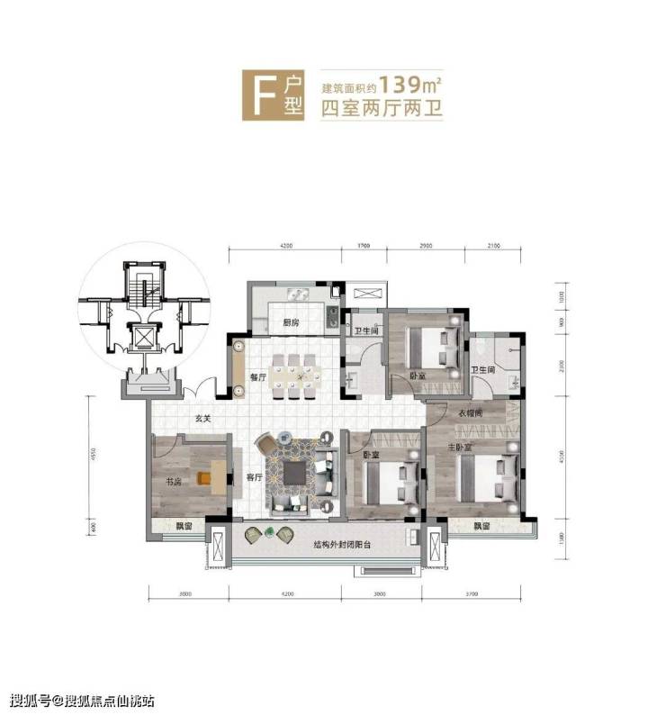 建面约139㎡洋房户型,全南北通透户型,私享独立电梯厅,入户子母双开门,南向约7.2米双联阳台,多功能宽大横厅与餐厅、厨房、阳台连成一线,南向约14米宽采光面,明厅明卧明厨明卫。阔绰起居空间、奢配观景飘窗、衣帽间和独立卫浴的优雅主卧,装下你想要的生活,为居者带来央景楼尊的金质生活体验。