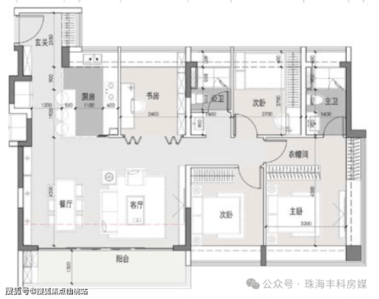 主卧套房设计,独立衣帽间;