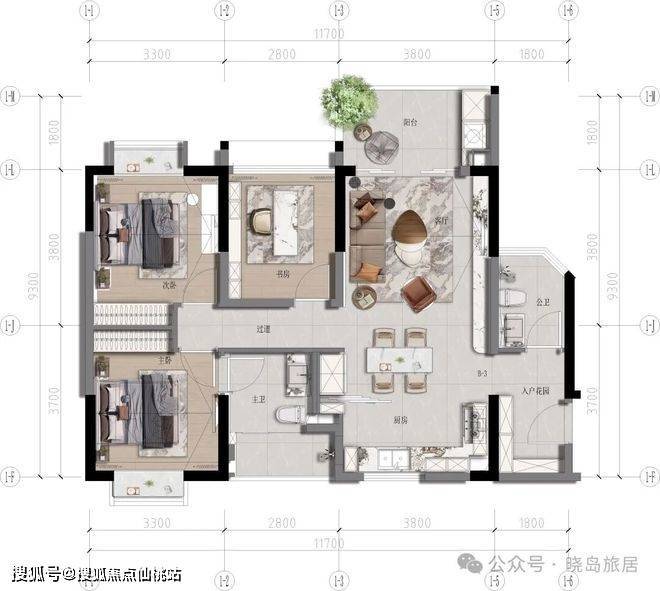 ③【B3 建面约89㎡,实际使用面积113㎡, 三室两厅两卫】