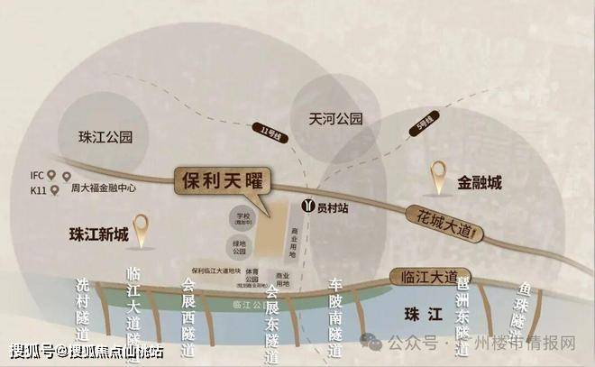 保利天曜位于员村二横路,金融城西区的核心位置,靠近珠江新城CBD,与广州塔、琶洲会展中心等地标性建筑近在咫尺。