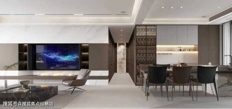 本户型原始功能区衔接偏紧凑,设计师将厨房移至入户旁并打通餐厨衔接区,既缩短备餐动线也让入户过渡更流畅。同时放大活动空间,以开放式布局让客、餐、厨形成联动的 “洄游动线”,强化互动。还保留了四面朝南的采光优势,优化主次卧布局并延续公卫干湿分离,提升小空间使用效率。