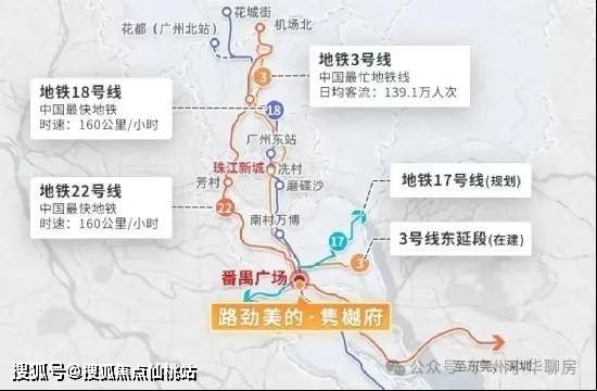 项目距离最近的地铁站3号线番禺广场站约800-900米左右,在这里有4条地铁交汇,分别为18-22-3号线,还有规划中的17号线,去珠江新城、琶洲都是直达过去