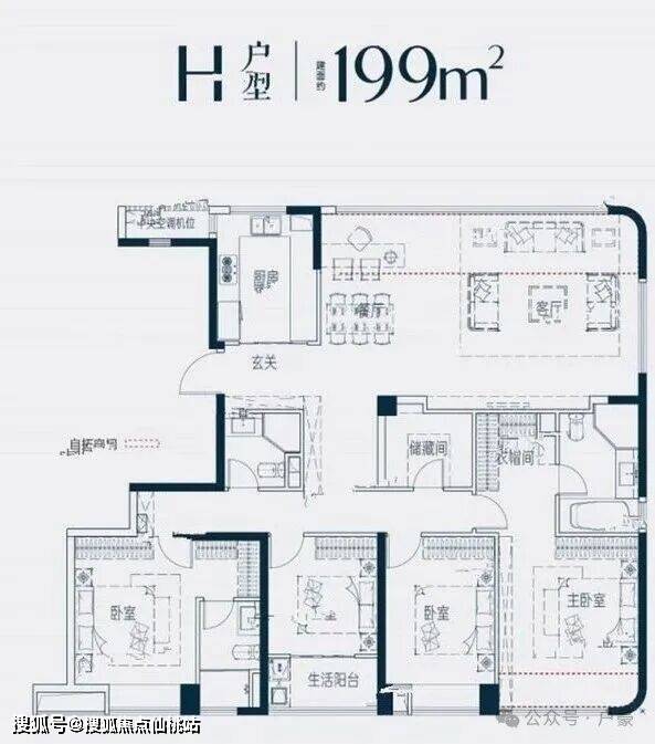 •199㎡五居:为景观优化将客厅做在北面,可看五缘湾湾景,双主卧设计 全部户型采用南北通透设计;