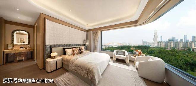 如今,市面上全L型采光面的主卧并不少见,但是能做到环幕级沉浸式观景的,还得是招商佛山序的全景舱光幕极享主卧。