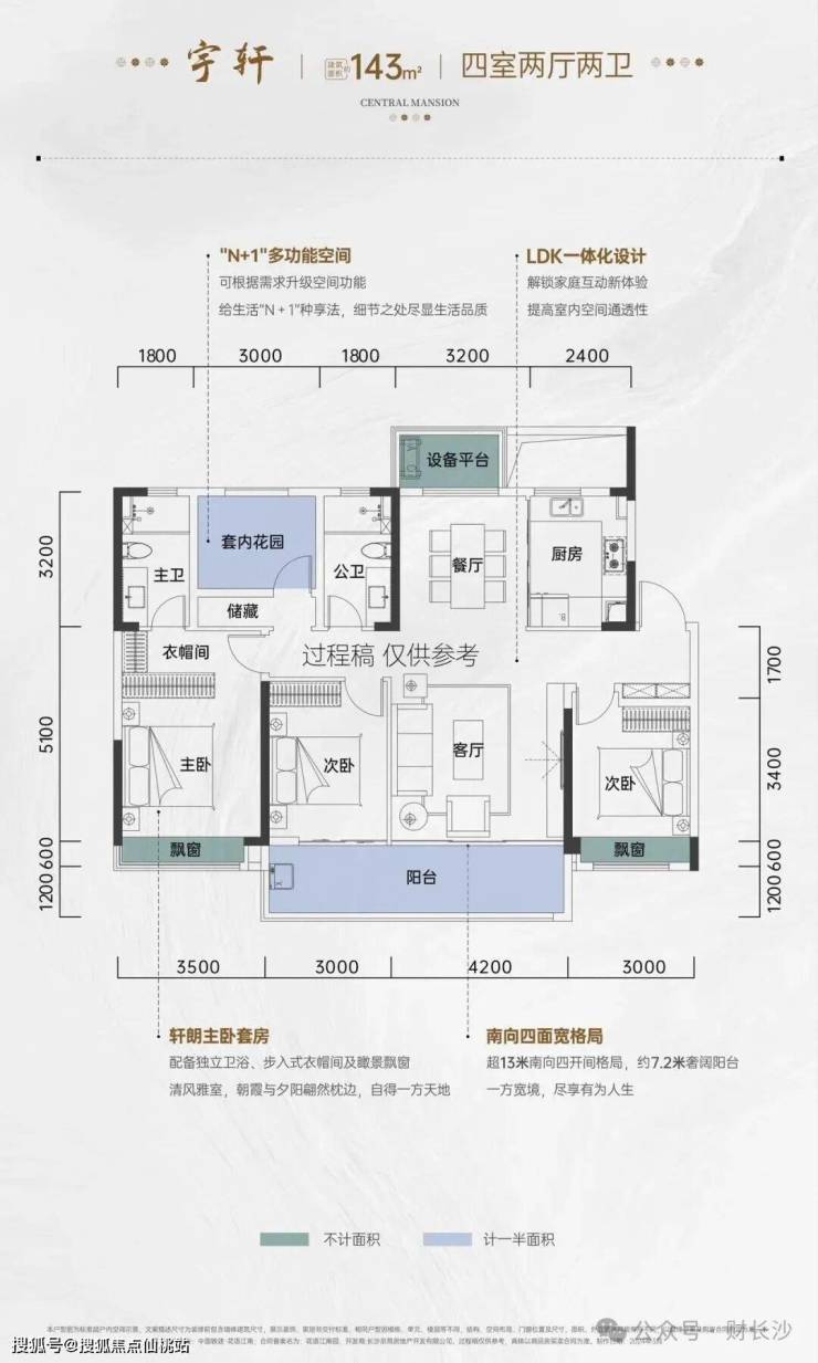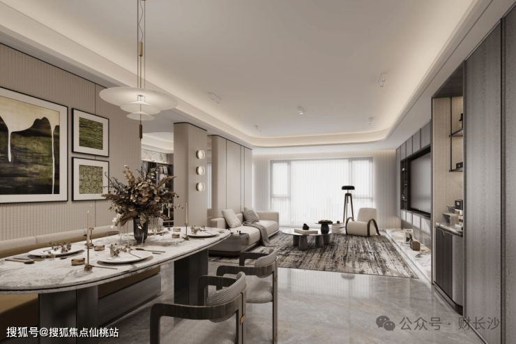 长沙首个S墙设计,4.3m客厅可变7.3m大横厅,在108㎡实现实际享受的空间感与舒适度,堪比以往的120㎡+。
