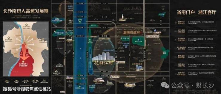 省府主城核心,总投资约316亿元,定位为“省府门户,湘江客厅”,坐享约2.76公里滨江岸线,约70%省级行政机构,60余家重点企业总部林立,约70亿奥体中心,约48亿国家医学中心等省级重点项目环伺,区域发展进入高速发展期。
