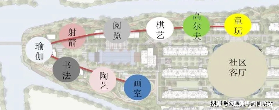 同时嵌入童玩、高尔夫、棋艺、阅览、射箭、瑜伽、书法、陶艺、画室、社区客厅十大主题空间,形成一条优质的“全龄活动链”,覆盖生活、文化、休闲、娱乐等各种场景需求。