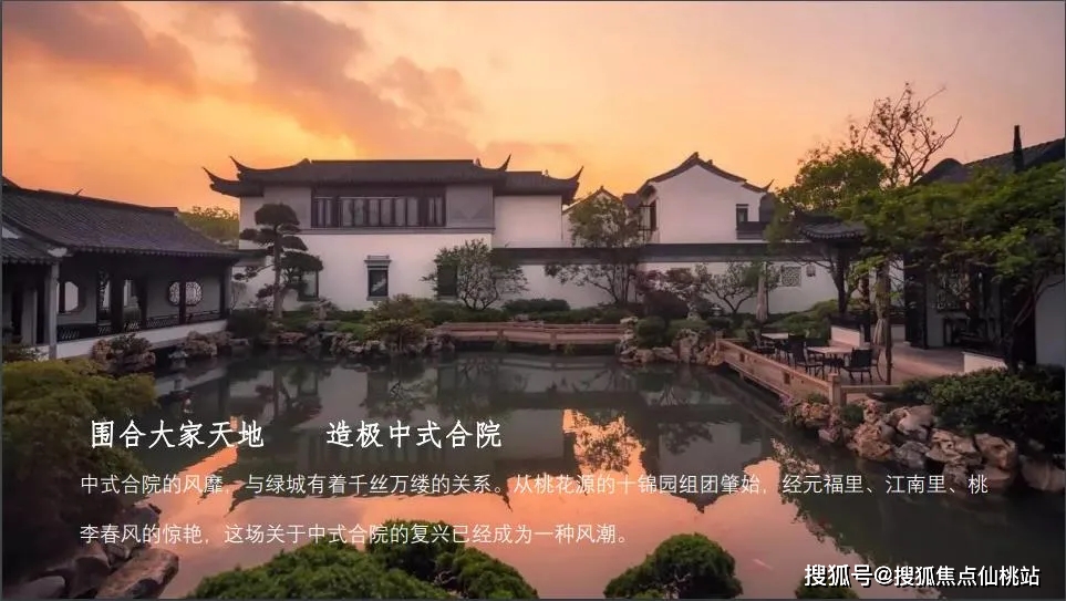 中式合院以传统中式建筑为依托,以精致的细节,适宜尺度来体现品质。白墙黛瓦,仿木门窗,富有水乡韵味。