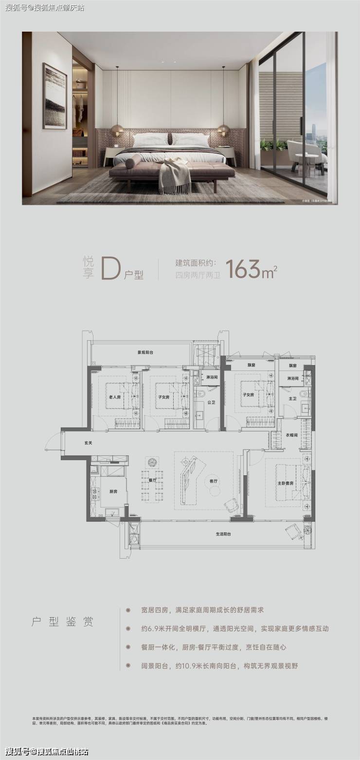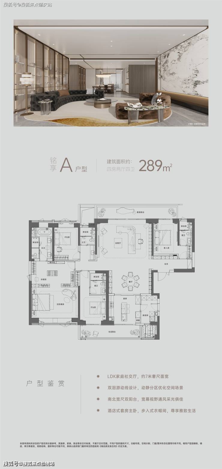 在产品雕琢上,为营造纯粹圈层,项目无小户型,定制建面约 143㎡ - 288㎡的三至四房,配备入户奢厅、巨幕阳台等豪宅配置,满足您对舒展生活的向往。