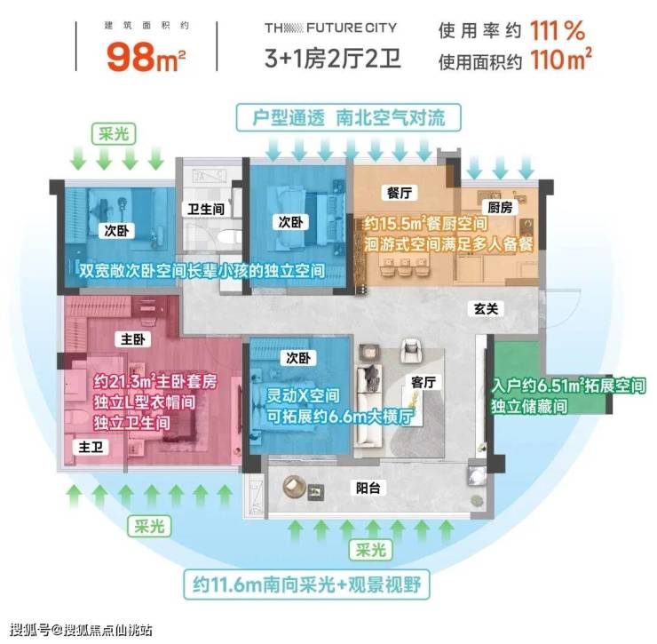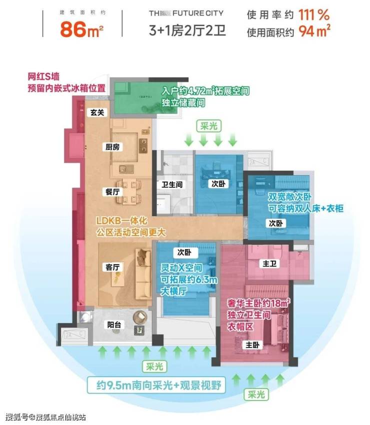 约75-98㎡创新户型,使用率高达约111%: