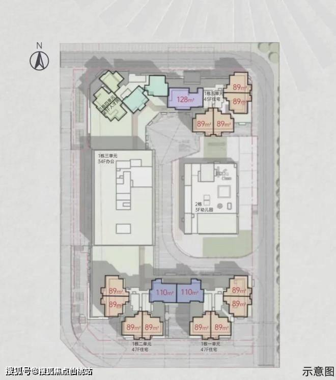 3单元为34层写字楼,2栋为3层幼儿园。
