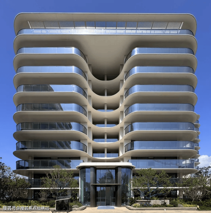 极简的建筑立面形式;精致的建筑表皮;海洋流体美学线条形成建筑外观群像独特的气质和标签。
