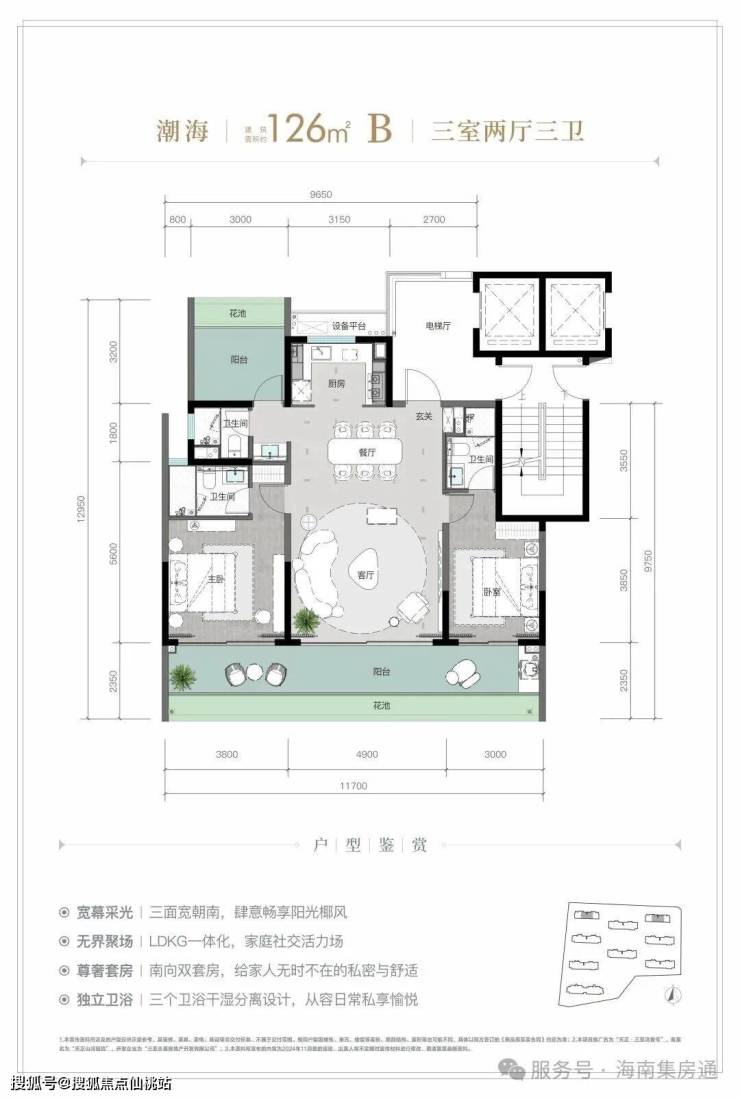 规划建筑面积约126-213㎡观海奢装大平层,约3.1米阔绰层高,部分户型创新设计270°全景飘窗主卧套、四开间朝南等,全成品高标奢装,营造全新舒居体验。