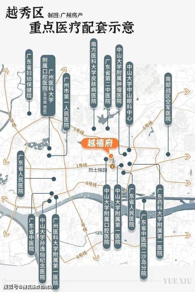项目坐落于广州越秀区核心医疗圈,周边汇聚14家知名三甲医院(车程约10分钟),占全市三甲医院总量的近40%。步行仅5分钟即可到达4所顶尖医疗机构: