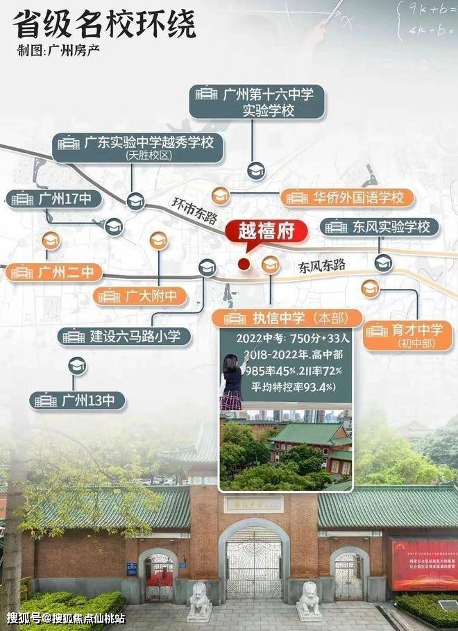 项目位于华乐街道优质教育圈,对口越秀区重点小学——建设六马路小学(参考往年招生政策)。根据2023年小升初政策,可参与10所优质中学摇号,其中包含6所省级名校: