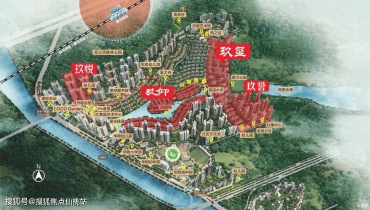 自身配套:华附惠阳学校设有小学(11个班)、初中(6个班)、高中部(三个班,高三今年9月开学);COCO Garden商业体量4万㎡将于7月正式营业,目前寰宇影城、永辉超市、探鱼、汉堡王等商家已签约入驻;社区内7万㎡丹悦湖;天睿南区紧邻公立大亚湾海惠幼儿园。
