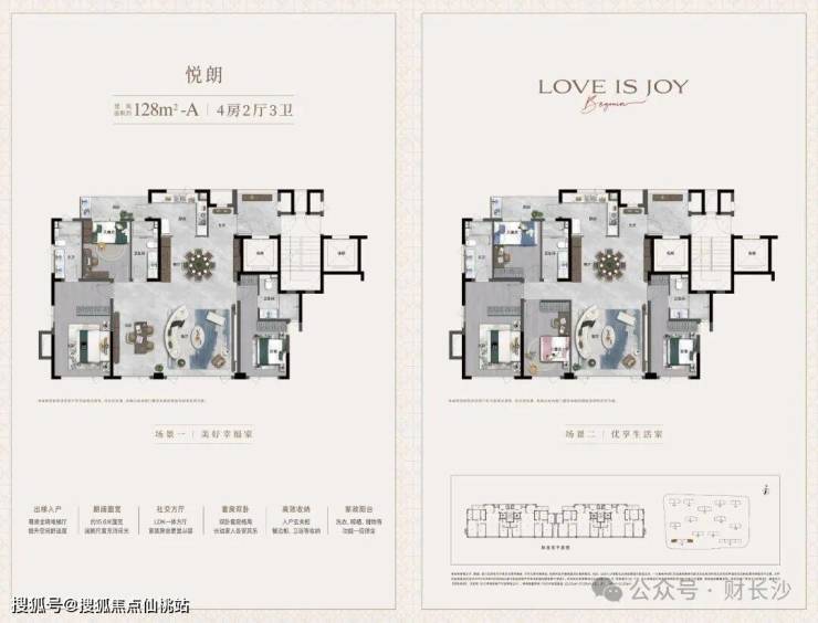 基于对当代菁英家庭改善向往,悦海棠定向研发悦己户型体系,建面约128-172㎡轻奢美学华宅,以X+1可变空间、家庭平权、超容量收纳等创新设计,由外而内,全维擢升精奢质感。