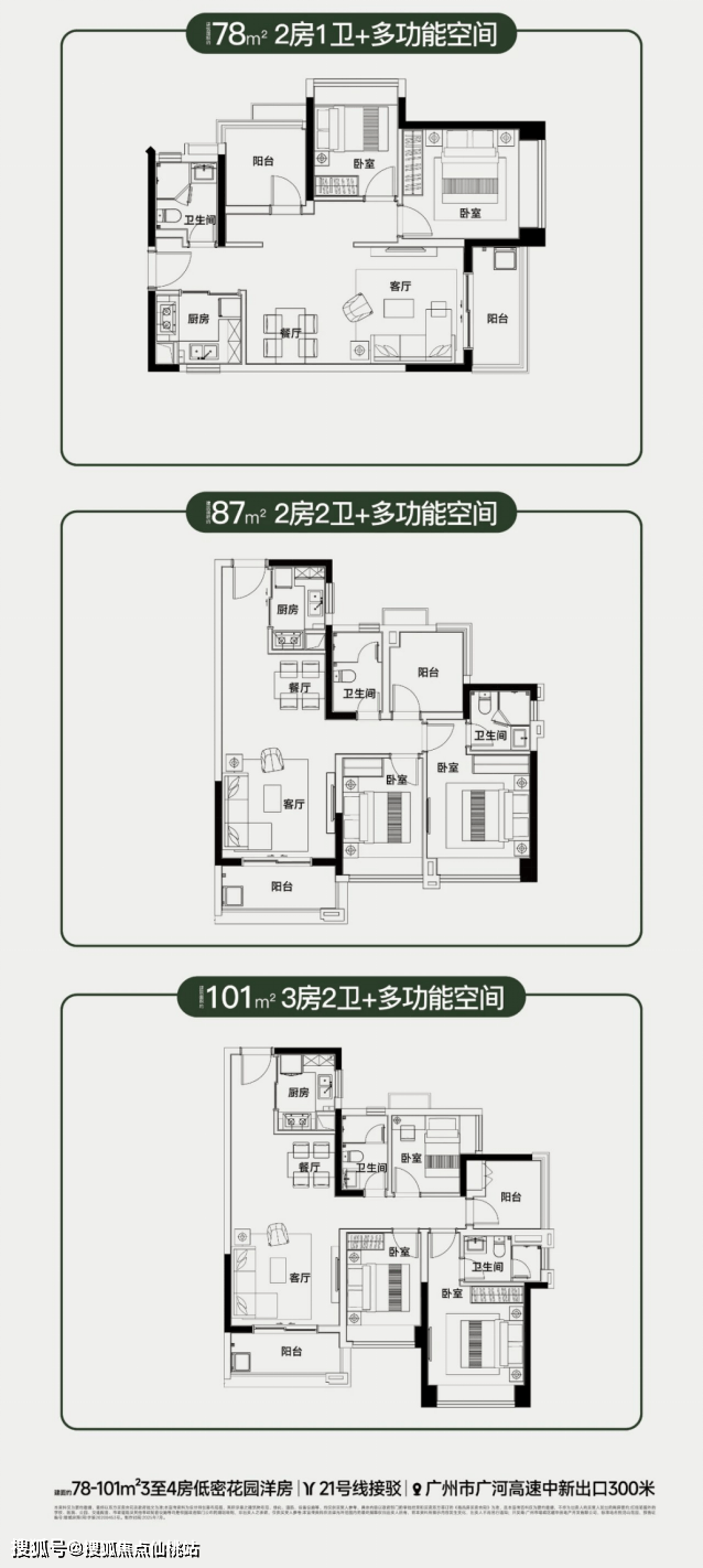 建面约78-101㎡园景三至四房,均价约7000元/㎡起,不到百万即可置业广州三房,完美适配: