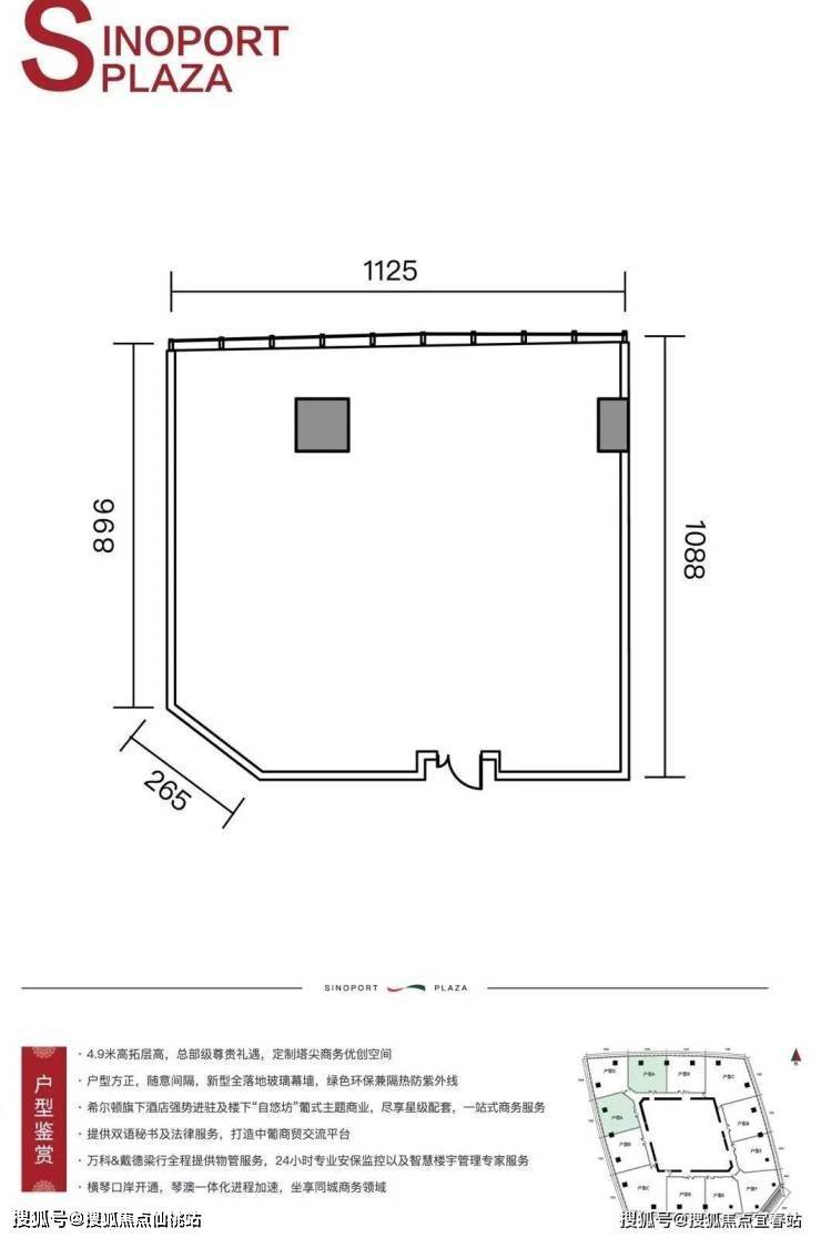更贴心的是,中葡商贸广场在售层高4.9米建面约146-268㎡总裁会客厅,层高4.9米建面约2300㎡企业总部,即买即入驻,付清全款6小时交房,结清契税7日内拿证,乘风而上不必久候!