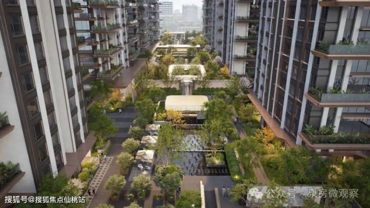 项目以约950米超长艺术化城市界面作为开场,串联起五大特色空间:尊贵典雅的"海韵聆声"迎宾区率先映入眼帘;"海岛乐章"屋顶花园以自然韵律奏响空间序曲;下沉式的"海风拂面"内庭花园营造沉浸式休憩体验;"海上悦景"休闲区为业主提供观景放松的绝佳场所;漫步至"元气PARK"林荫公园,树影婆娑间尽享清风徐来。